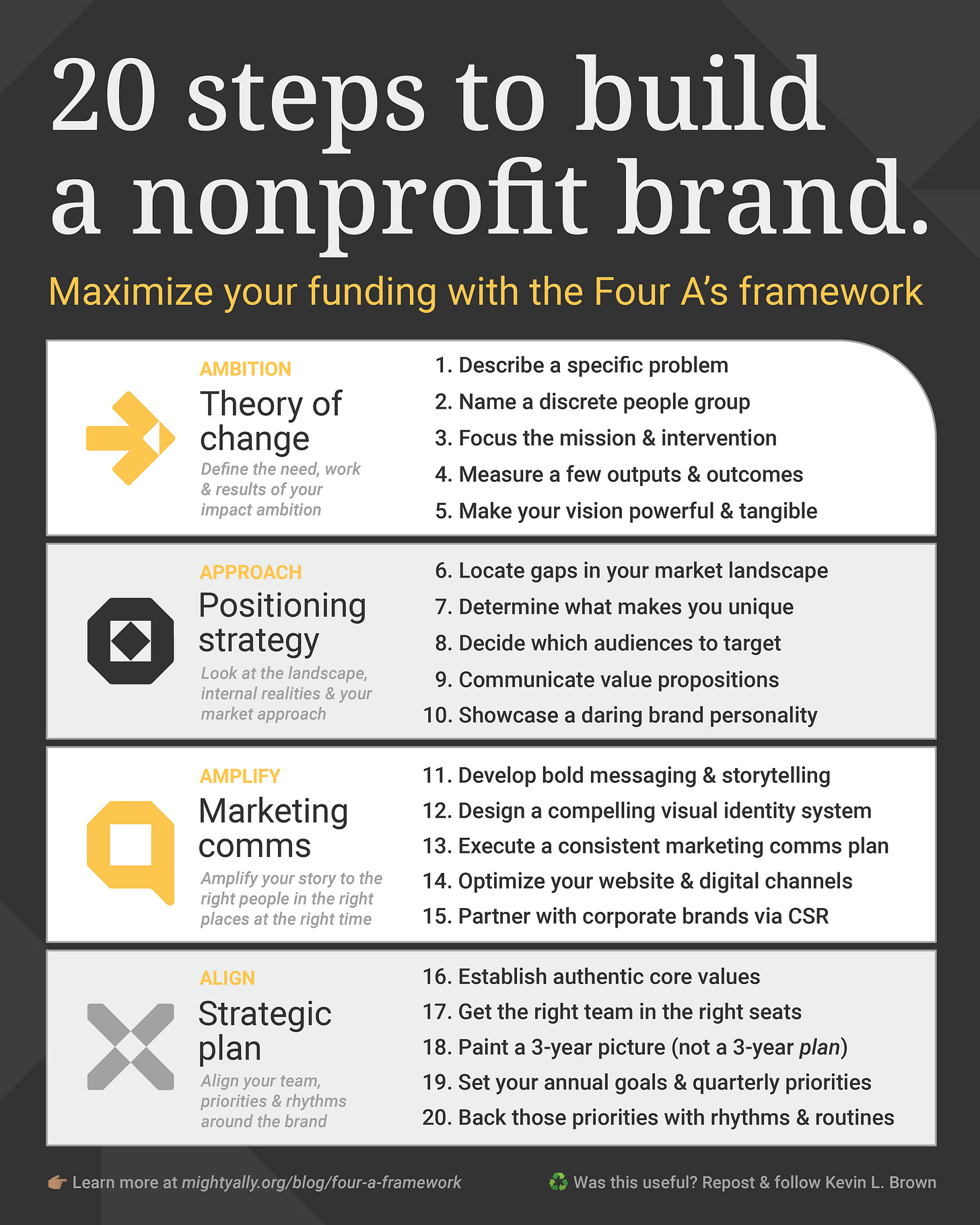 20 steps to build a nonprofit brand.