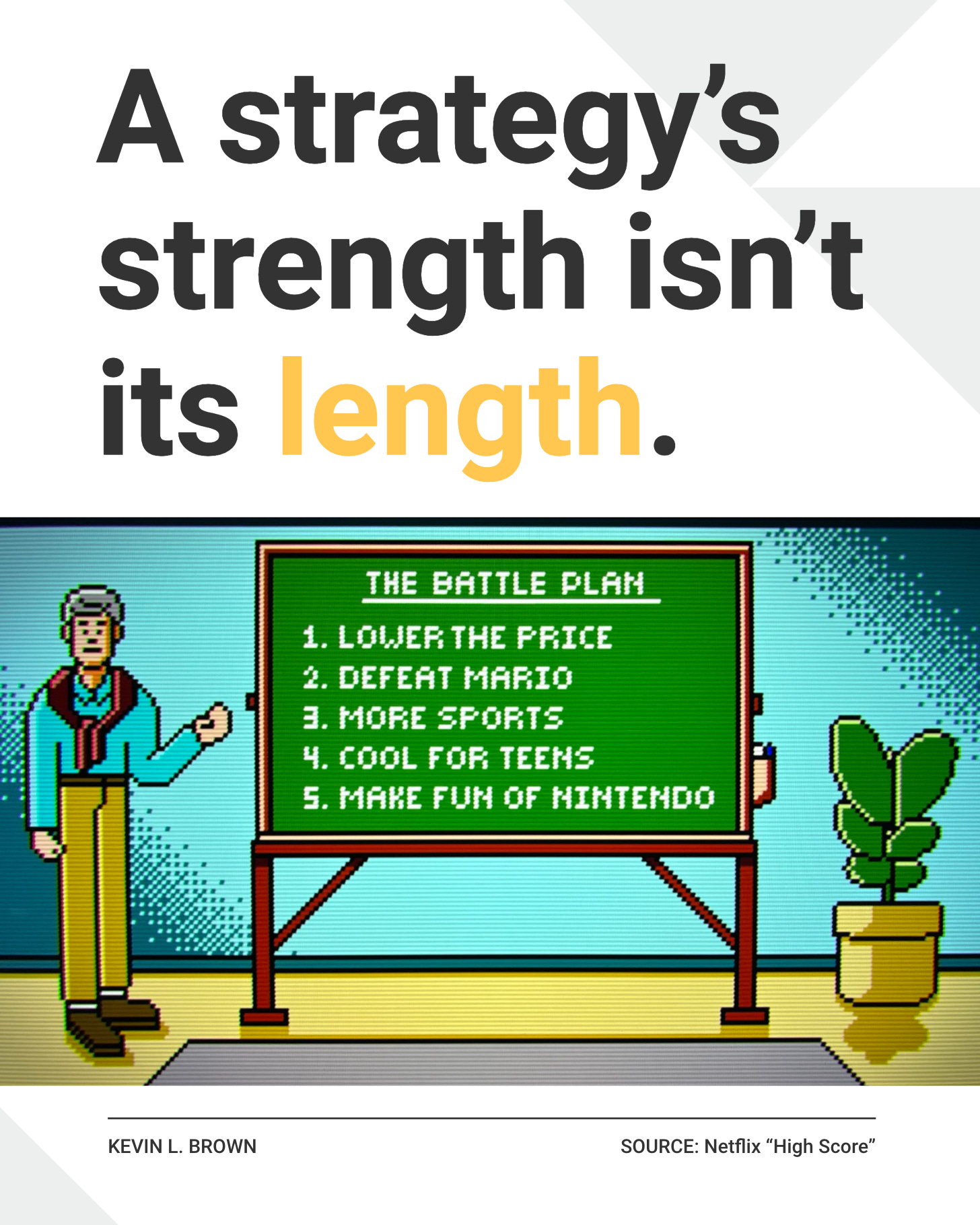 This $5 billion strategy below was only 14 words. So surely your strategic plan can be brief too. Because your strategy — however brilliant — is worthless if lost in translation or easily forgotten.
