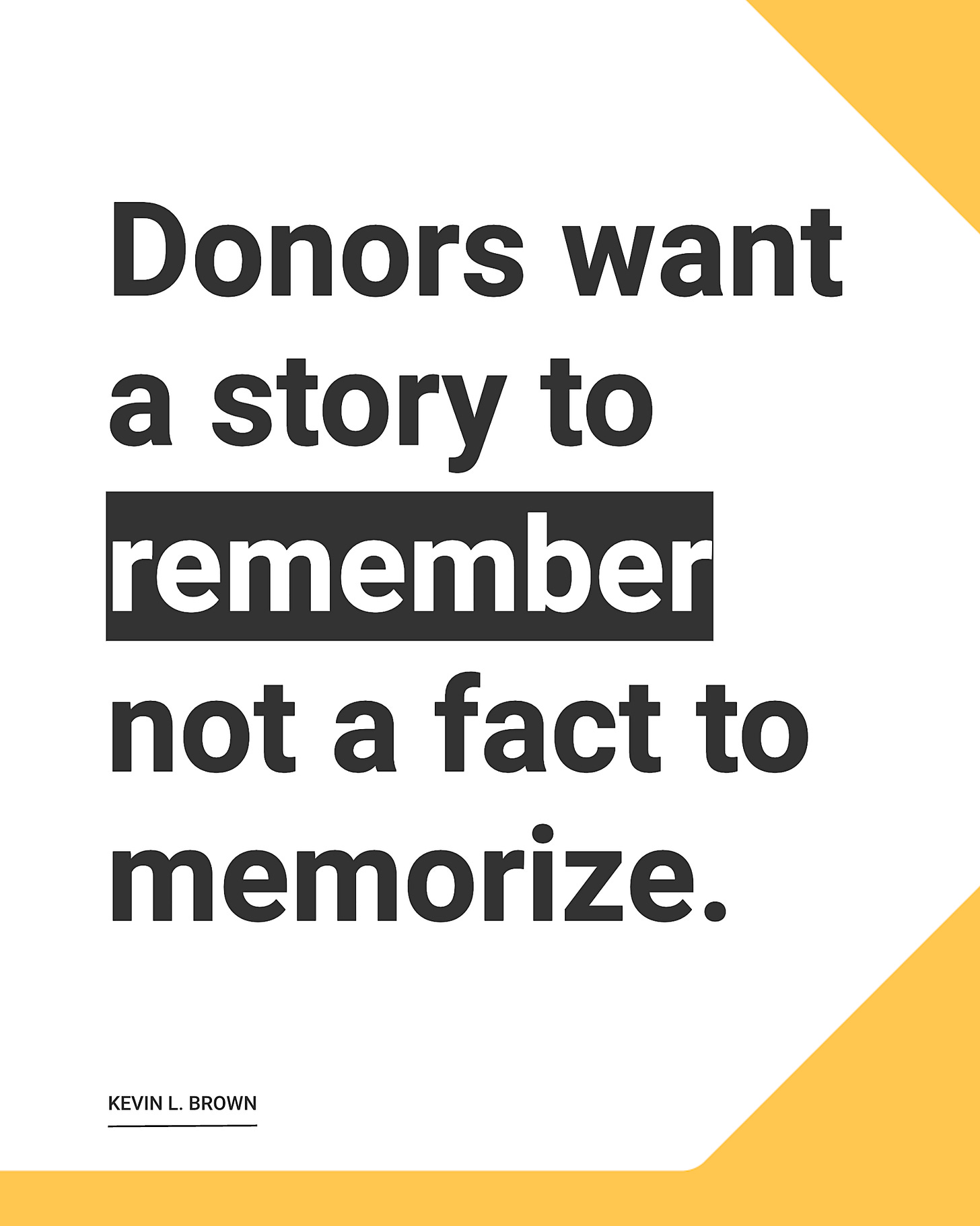 But “people forget facts; they never forget a good story,” says fundraising expert Claire Axelrad, J.D., CFRE.