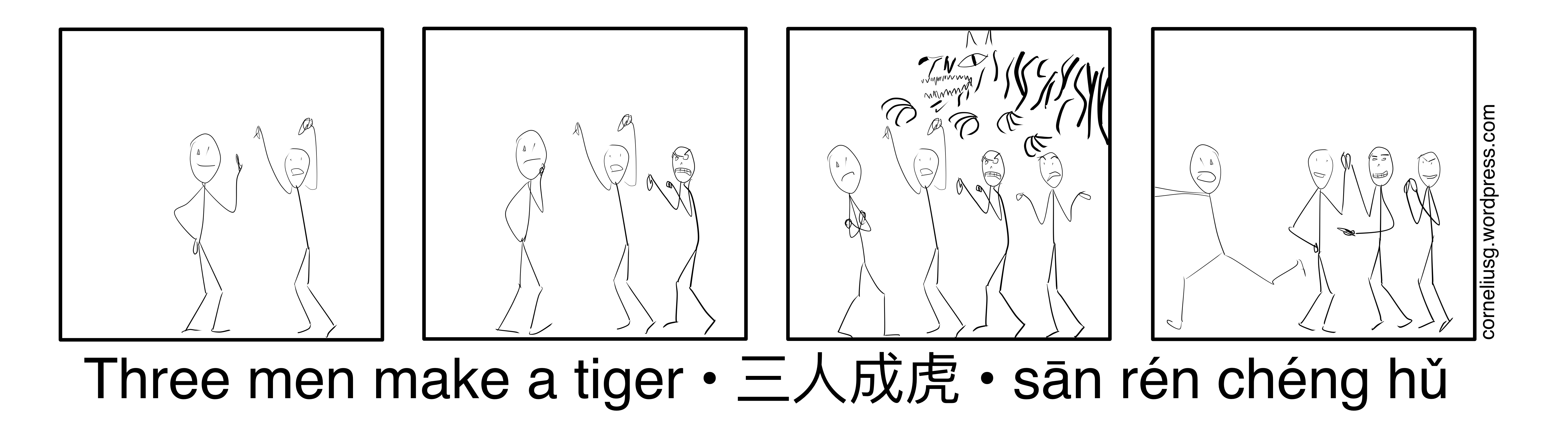 The Chinese proverb “Three Men Make a Tiger” says people will believe anything if enough others tell them it’s true (just three other people, in fact). Like a tiger roaming around the village.