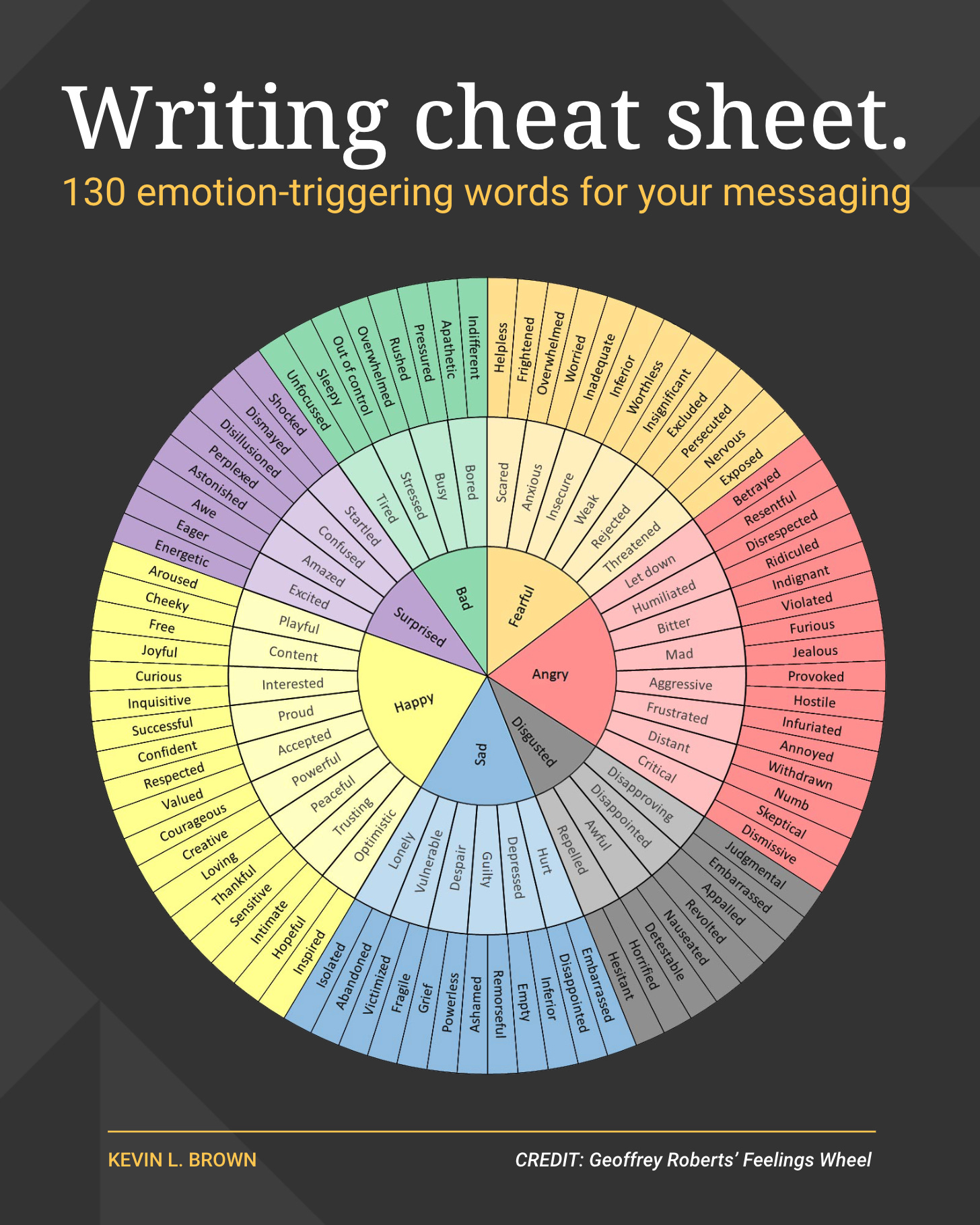 That’s why this brand feelings wheel infographic can help — a copywriting cheat sheet packed with 130 emotion-triggering words for your messaging. Start in the center and move outwards to level up your language.